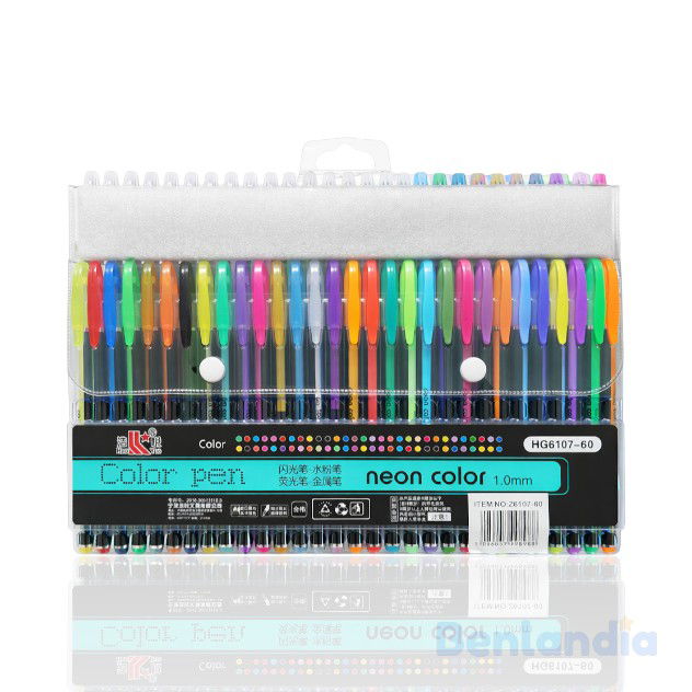 Este increíble set de 60 plumas de gel es perfecto para dibujar, decorar, escribir y dejar volar la imaginación. Incluye una combinación soñada de tonos Neon, Glitter, Metálicos y Pastel, ideales para que cada creación tenga un toque único y lleno de color.